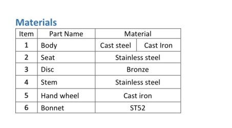 • متریال بدنه: چدن، چدن داکتیل، آهن، فولاد، برنج
